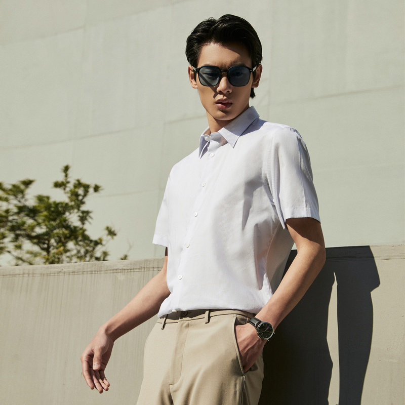 【条纹棉桑蚕丝衬衫】雅戈尔春夏新款官方商务易打理短袖衬衫男