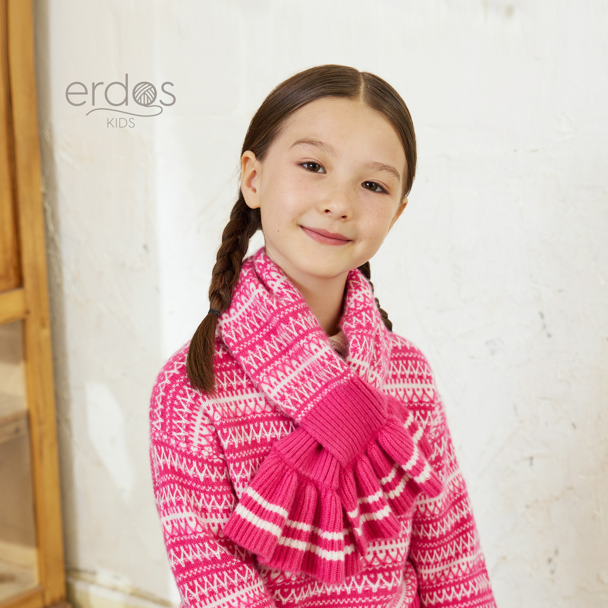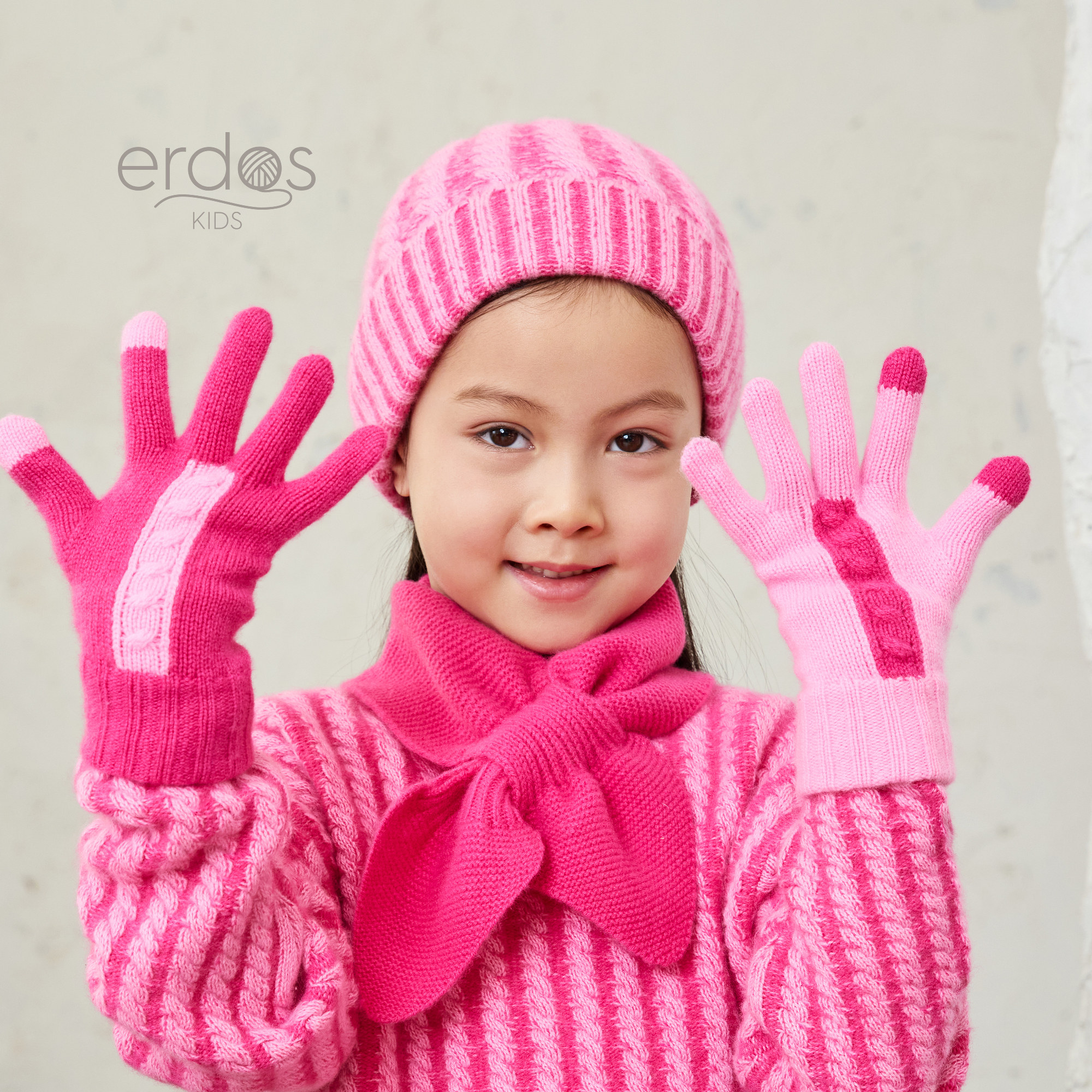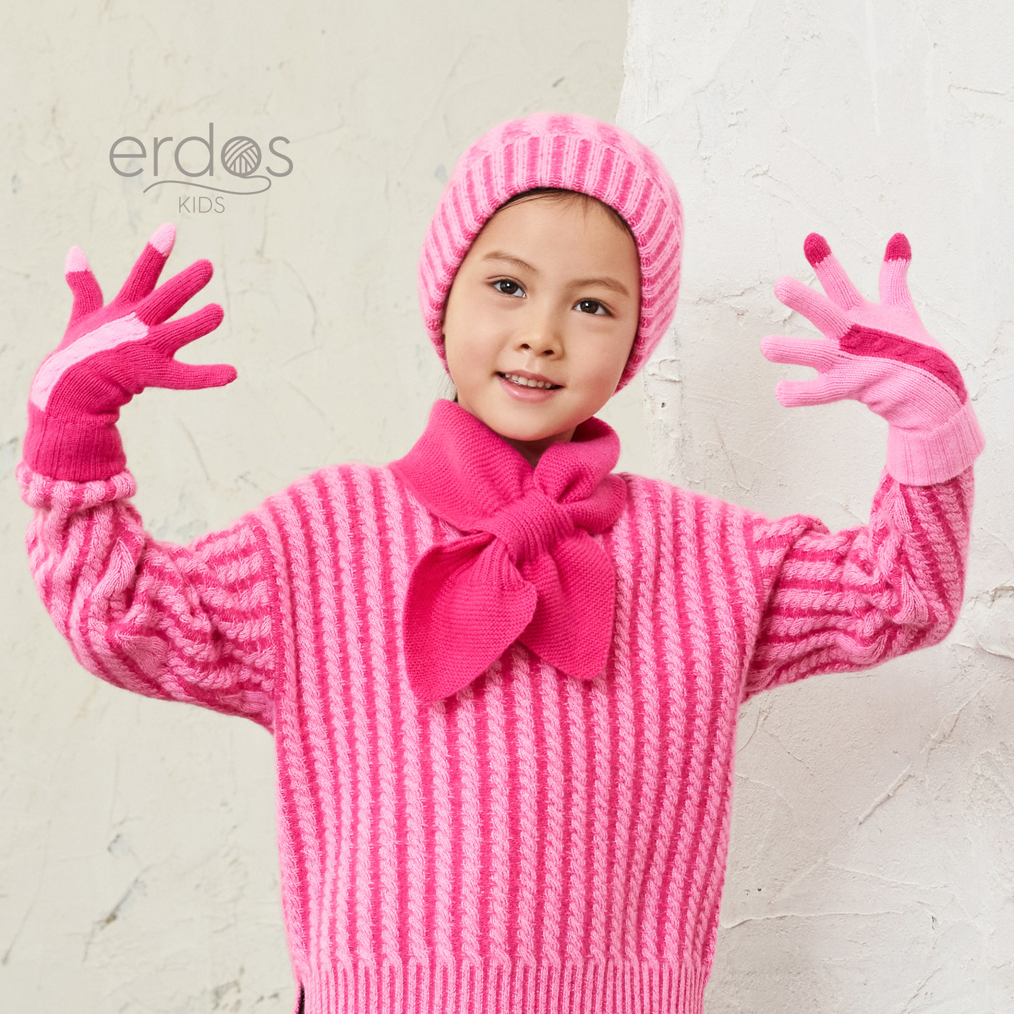 erdosKIDS 鄂尔多斯童装25秋冬新品女童纯羊绒保暖帽子围巾手套