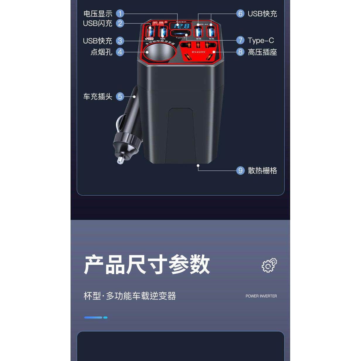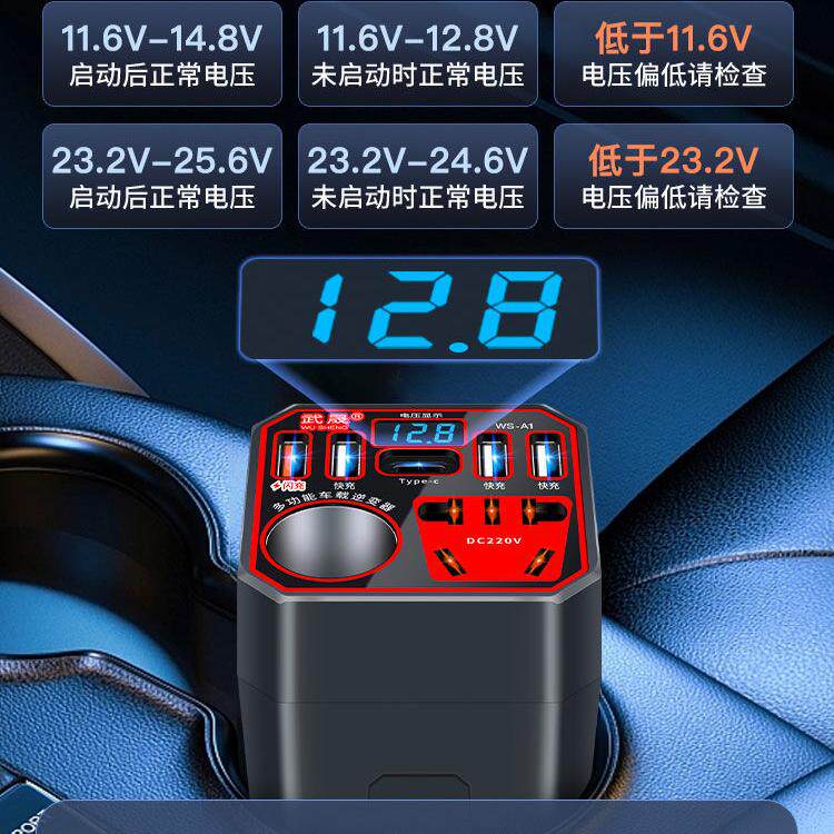 车载充电器12V/24V转220V大功率逆变器多功能智能点烟器转换插排
