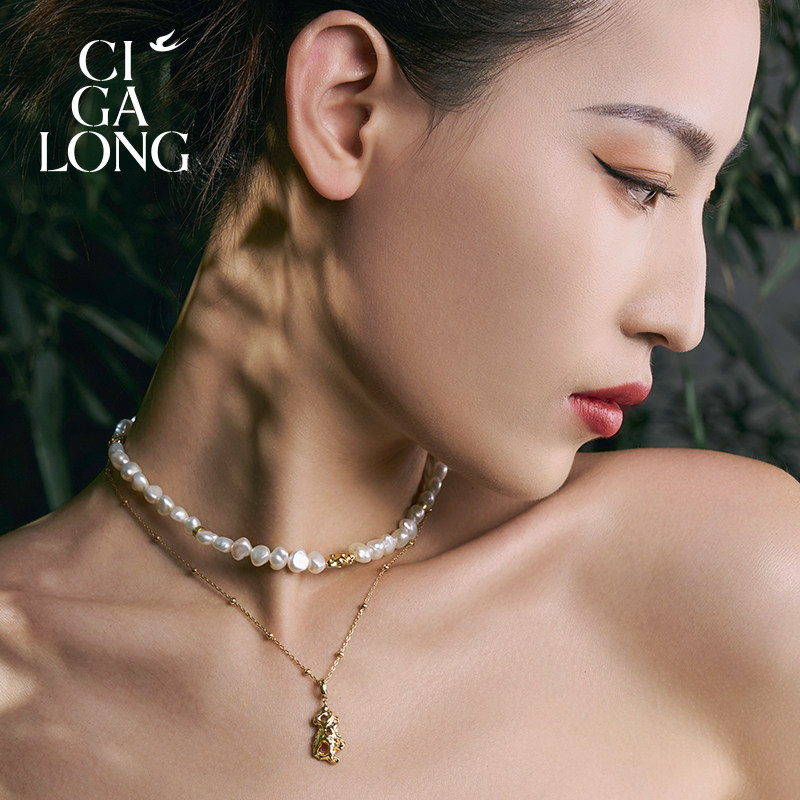 CIGALONG龙梓嘉石来运转巴洛克珍珠项链新中式珠宝新年情人节礼物