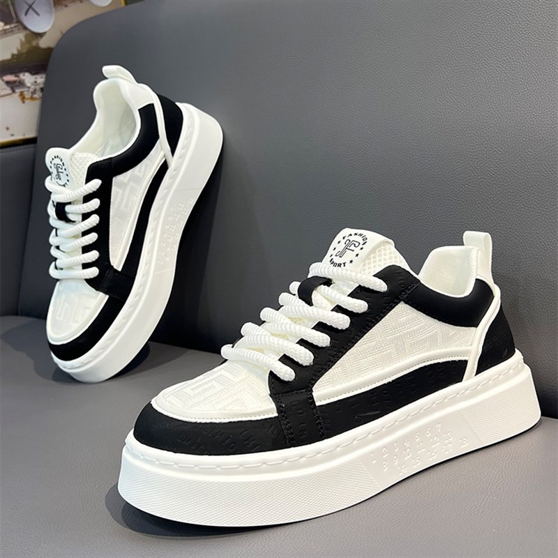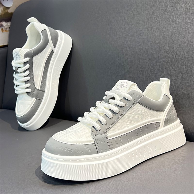 男鞋夏季透气网面潮流百搭休闲板鞋青少年运动防滑厚底增高小白鞋