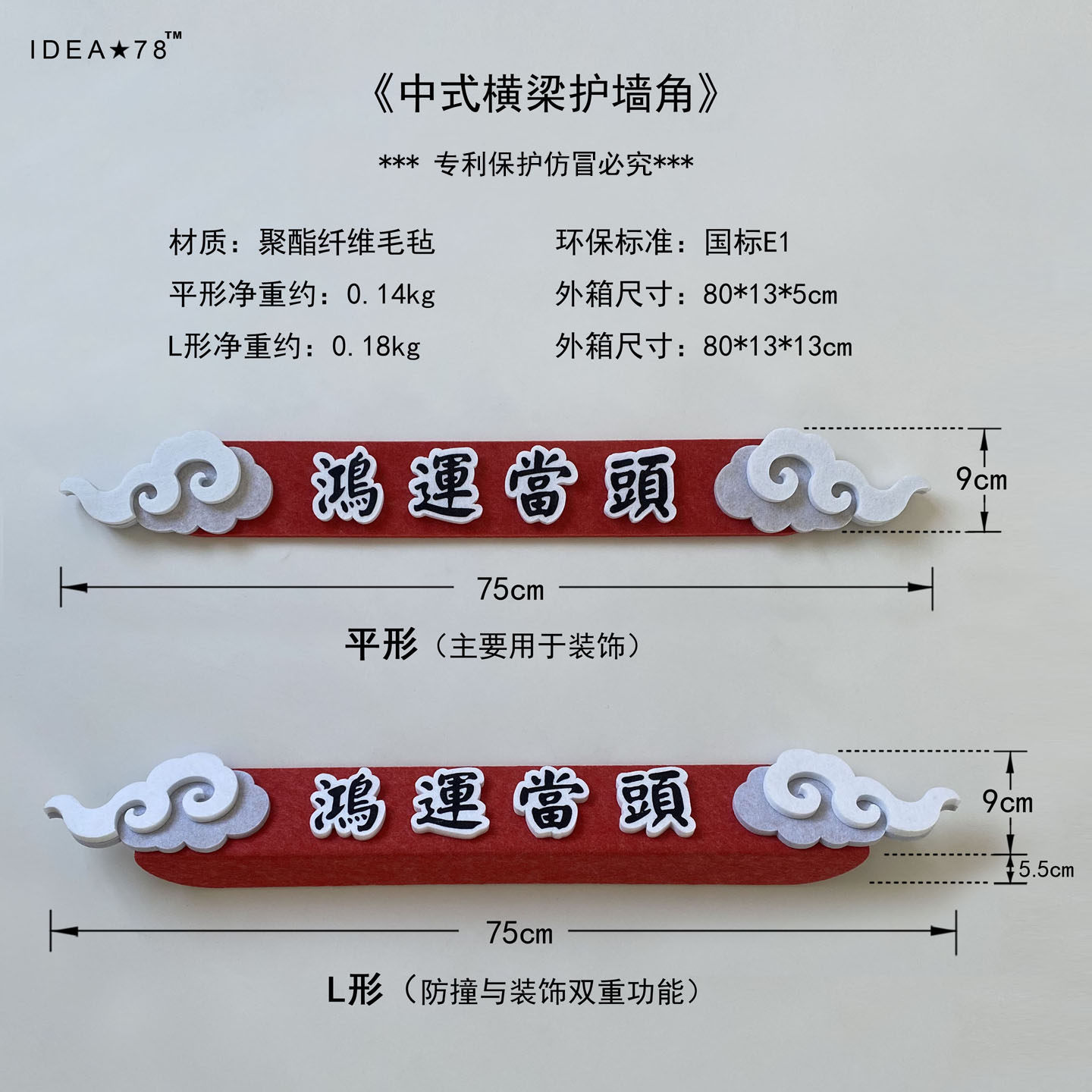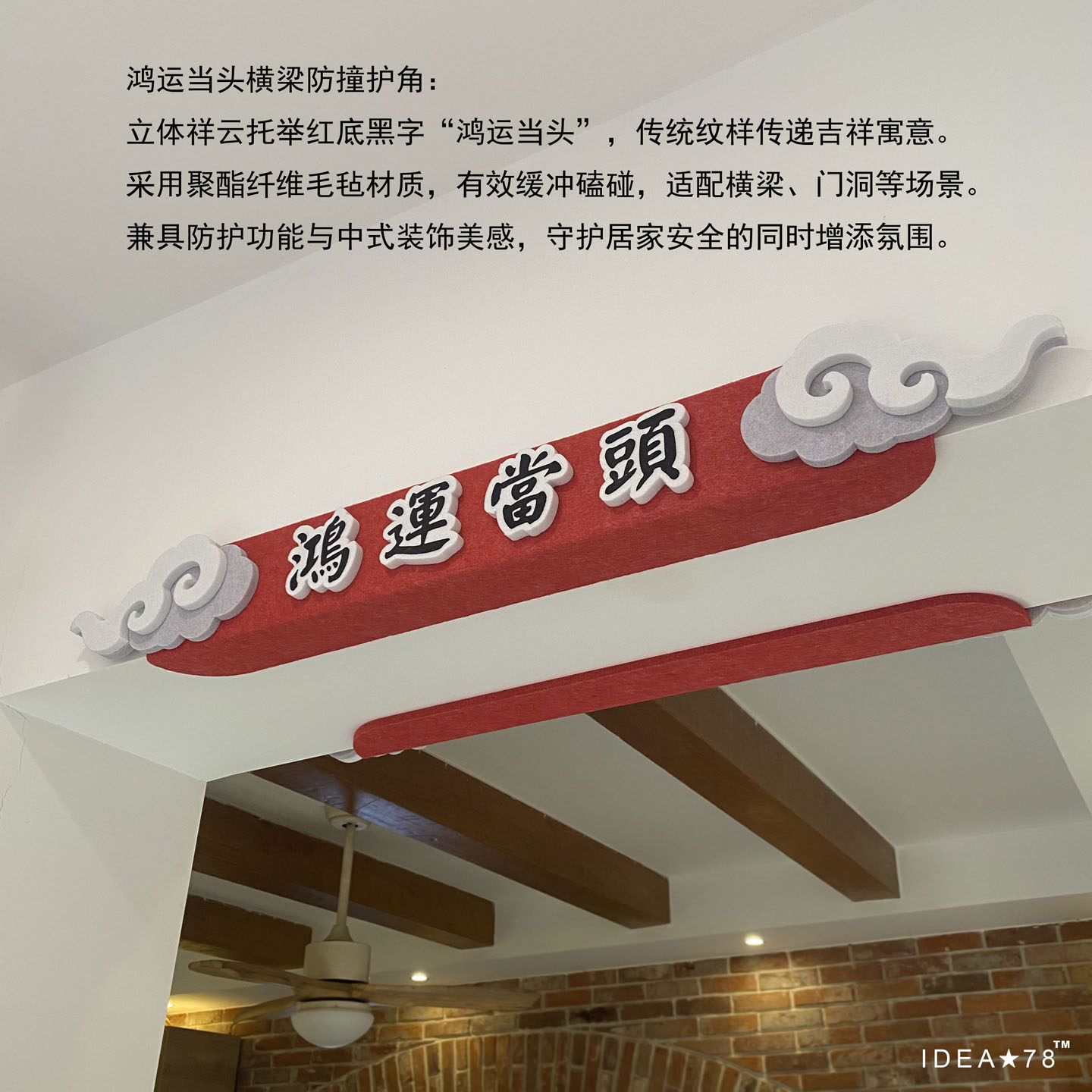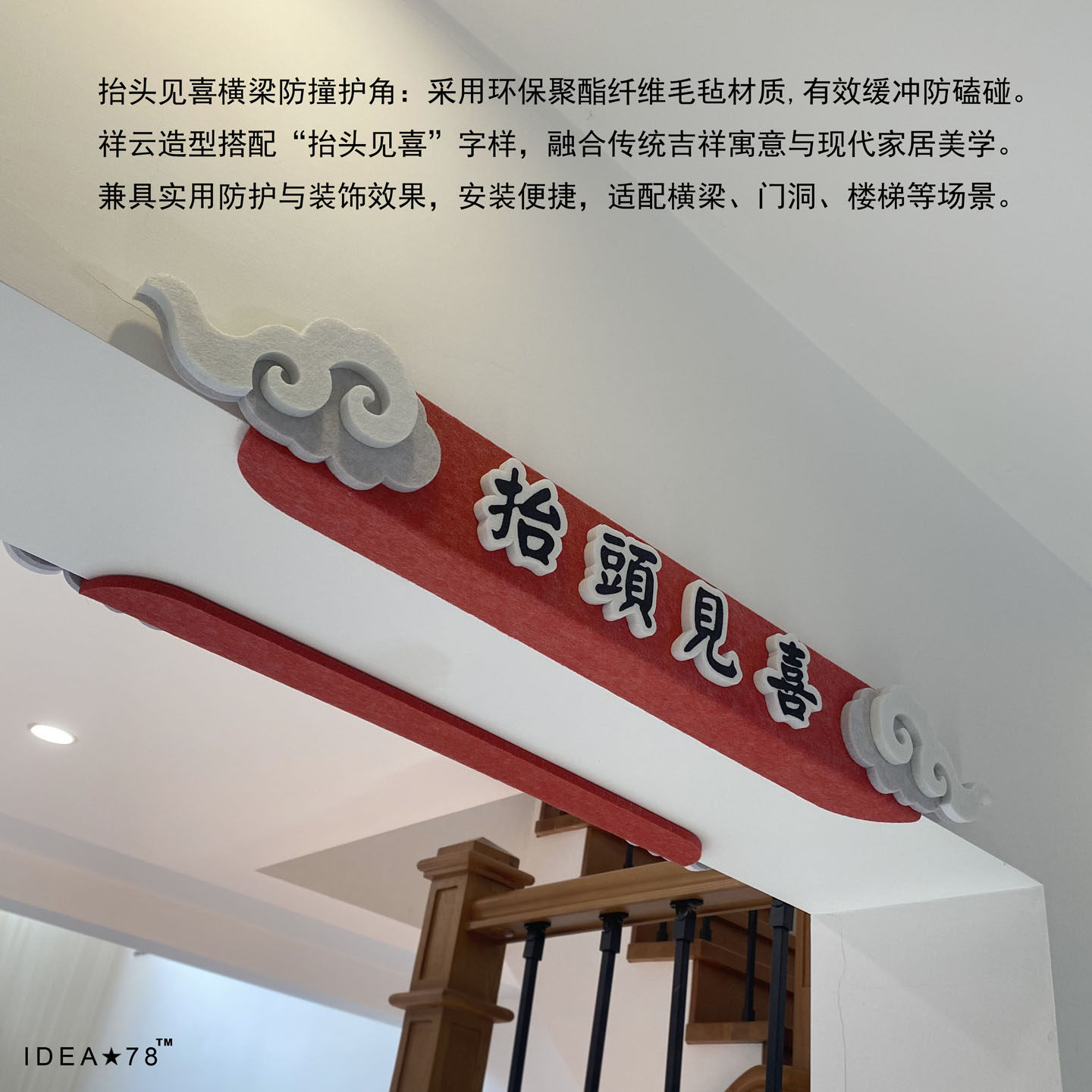 抬头见喜鸿运当头横梁房梁墙贴防撞条装饰中式祥云造型小心碰头牌