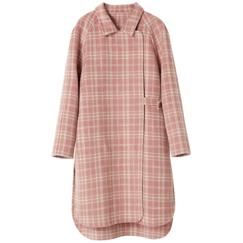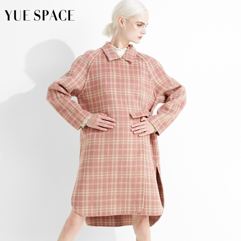 YUESPACE秋冬女士双面羊毛呢外套大衣格子中长款翻领宽松原创设计