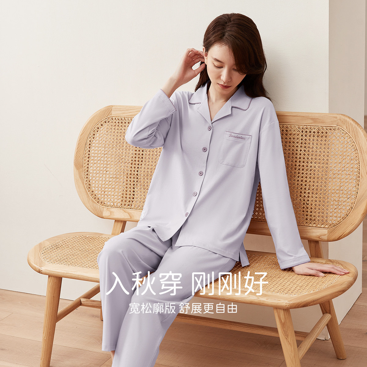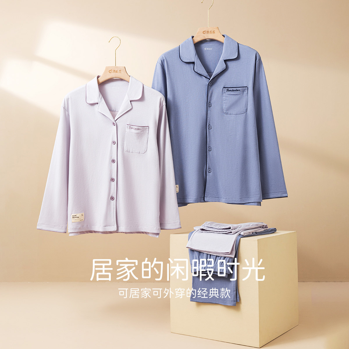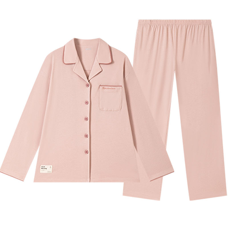 顶瓜瓜顶呱呱女士长袖纯棉开襟小翻领睡衣柔软春夏新品家居服套装