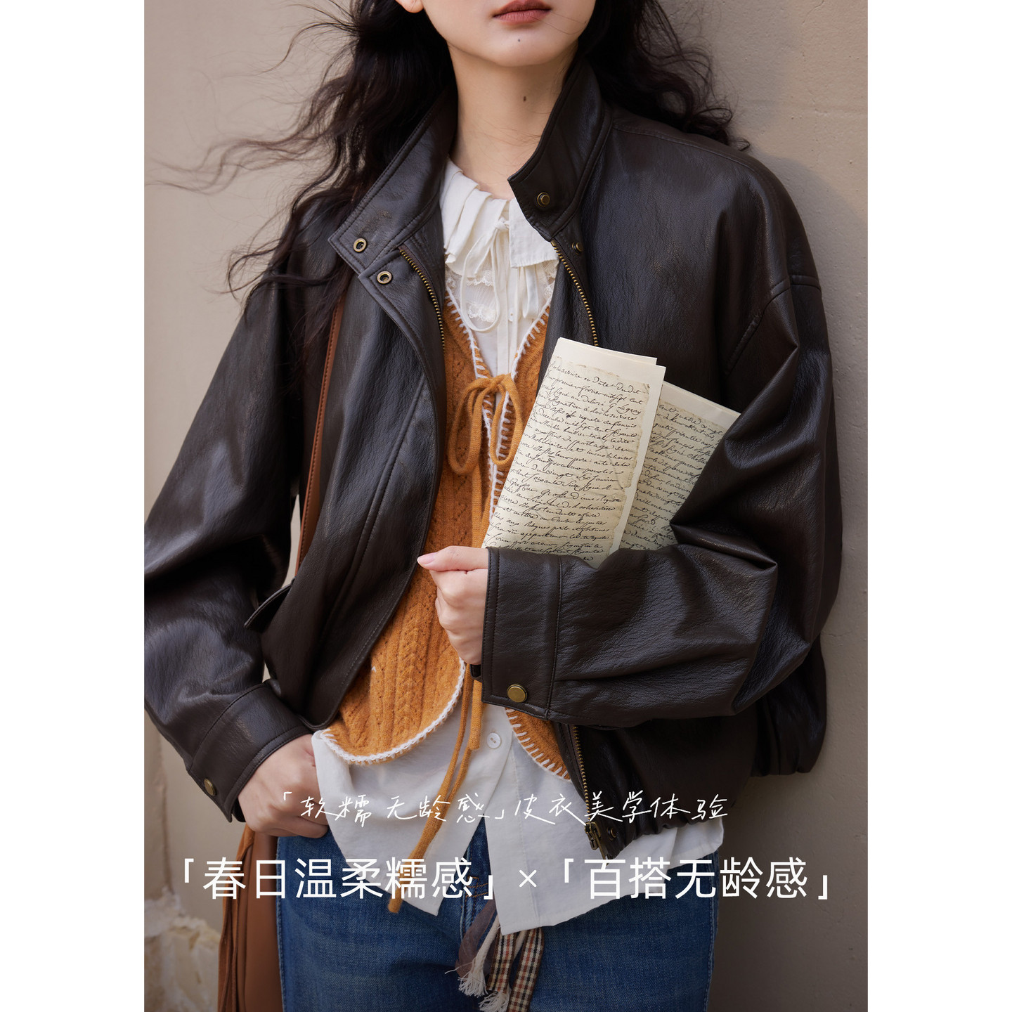 [无龄感皮衣]紫涵短款立领皮衣女2026年春季新款复古宽松夹克外套