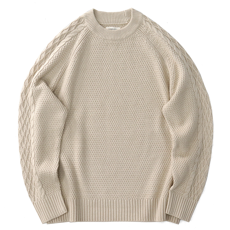复古菠萝纹绞花套头针织毛衣
