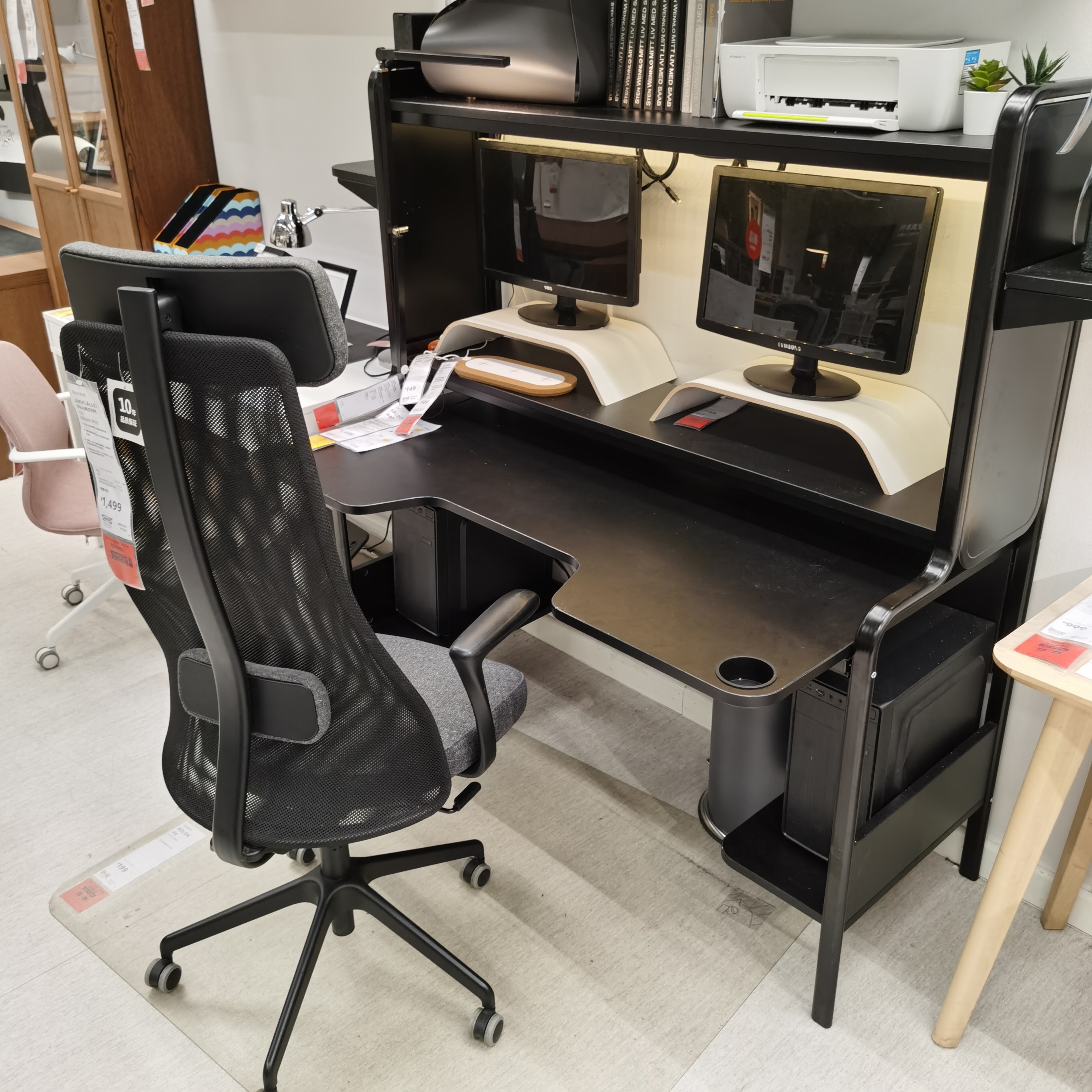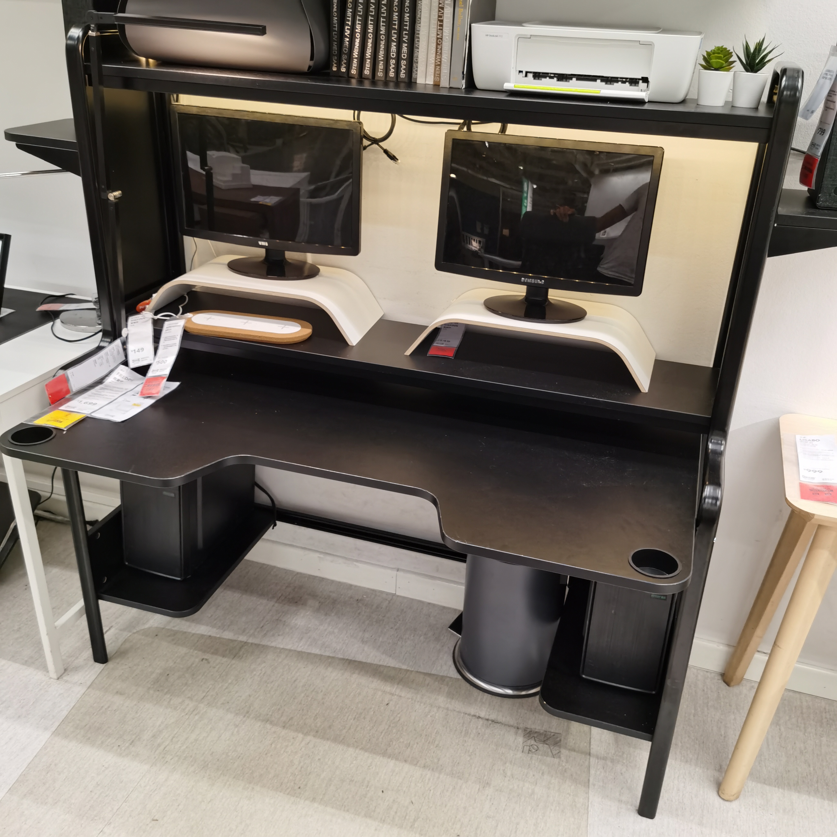 宜家弗雷德工作台电脑桌电竞游戏桌网红电脑桌双台电脑带书架书桌