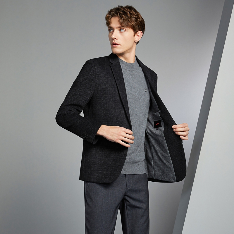 柒牌休闲西装外套男秋冬新款修身提花一粒扣男士灰色单西西服