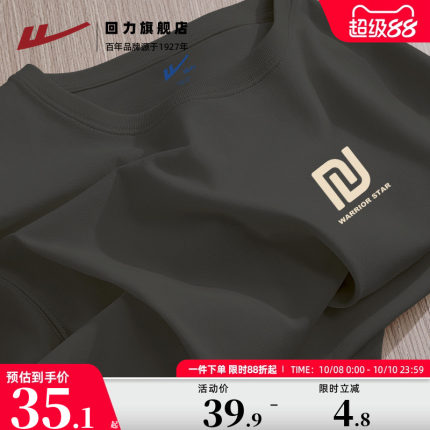 回力休闲t恤男短袖夏季新款重磅纯棉半截袖宽松大码男士夏天衣服A
