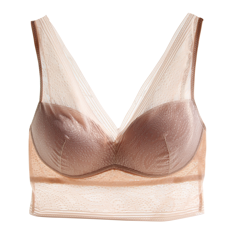 软薄V领大码文胸一片式蕾丝无痕裹胸无钢圈胸罩无痕文胸内衣女D3