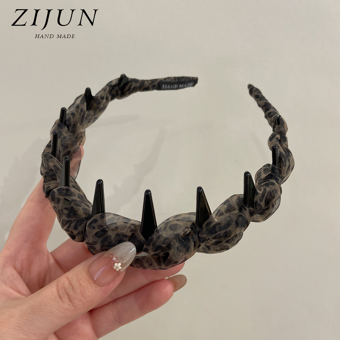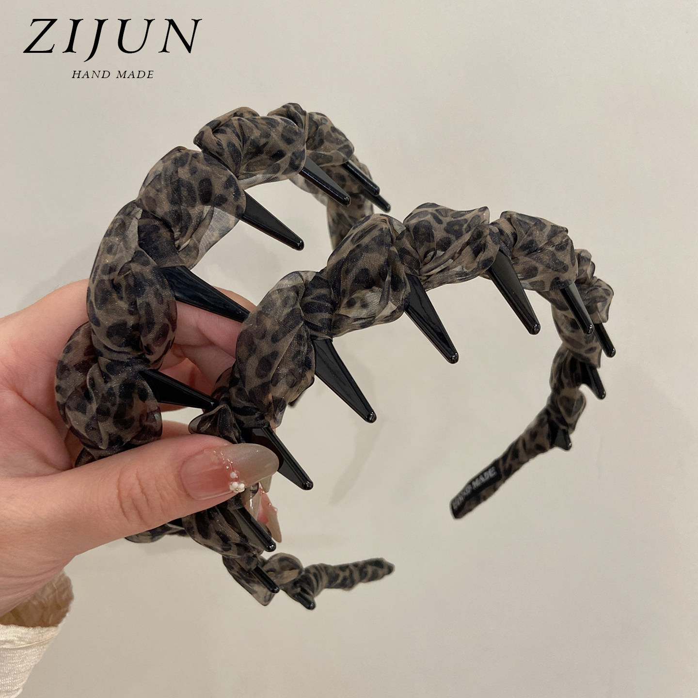 复古网纱豹纹发箍女高颅顶显发量带齿防滑洗脸压发卡外出通勤头箍