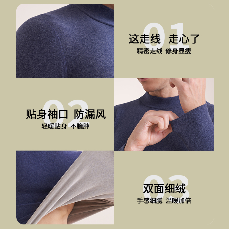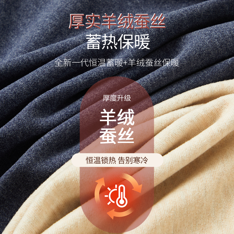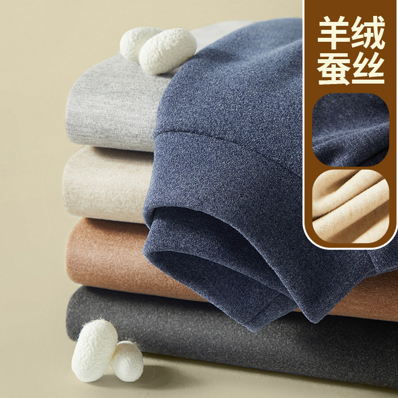 初内男士保暖内衣套装羊绒蚕丝秋衣秋裤加绒加厚打底半高领棉毛衫