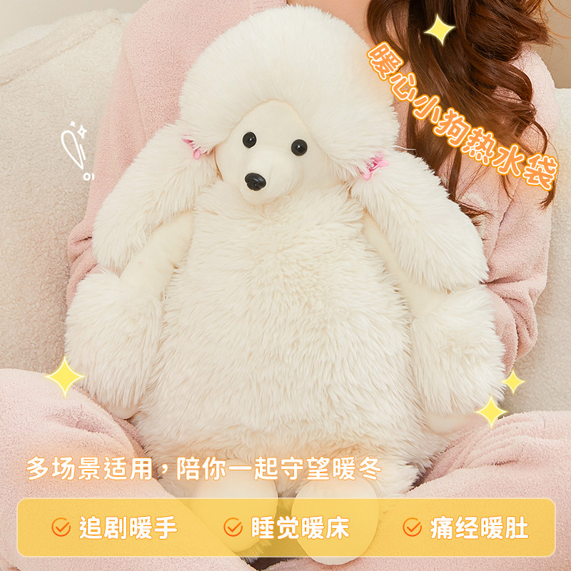 新款贵宾犬热水袋充电式暖宝宝可爱毛绒暖手宝电暖宝电热敷肚子