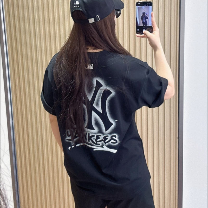 MLB正品25年春夏男女情侣NY大标撞色圆领休闲短袖T恤3ATSB5153