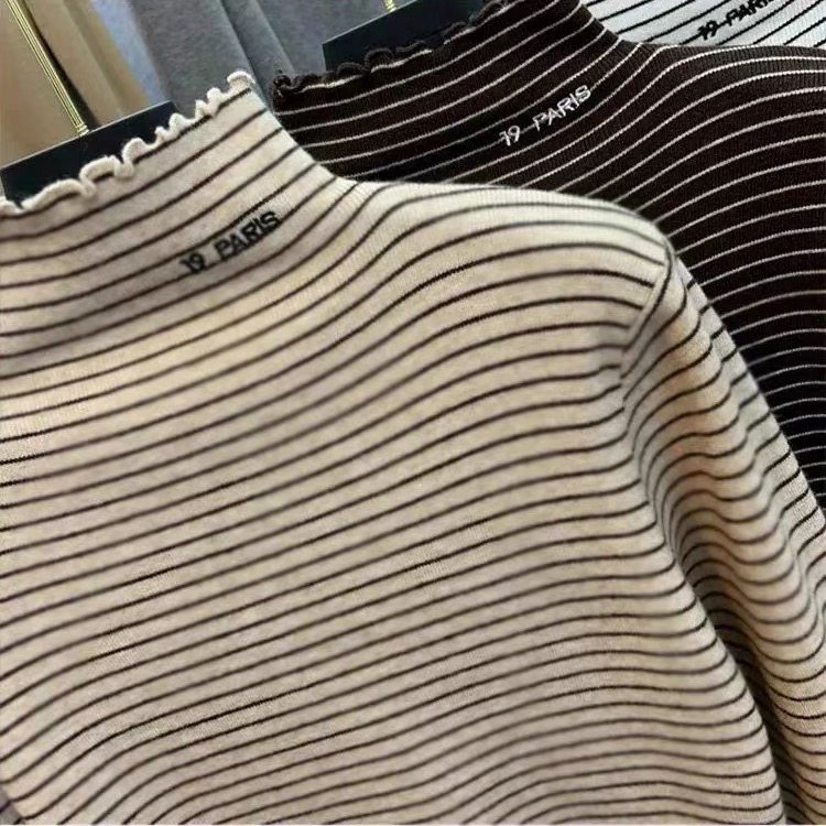 女大童德绒打底衫内搭秋冬高领儿童长袖t恤修身条纹上衣加厚外穿