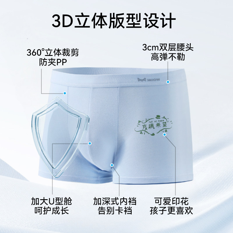 猫人纯棉男士内裤青少年学生胖童四角裤男孩发育期大童本命年短裤