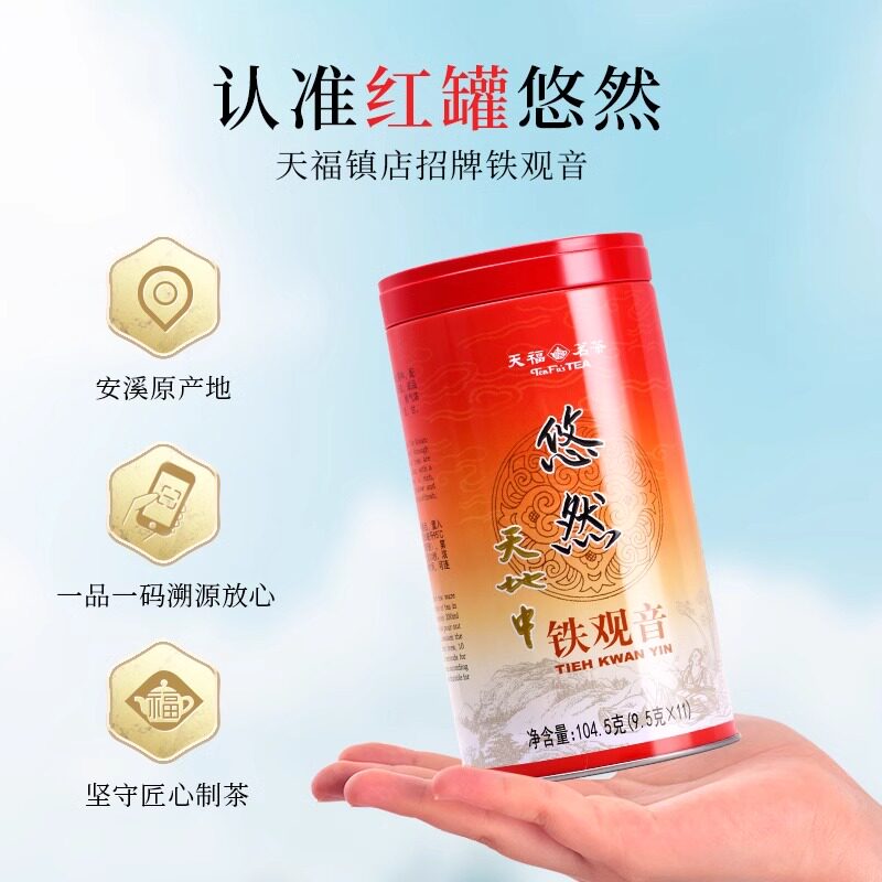 天福茗茶 悠然铁观音特级清香乌龙茶 安溪茶叶2025新茶罐装104.5G