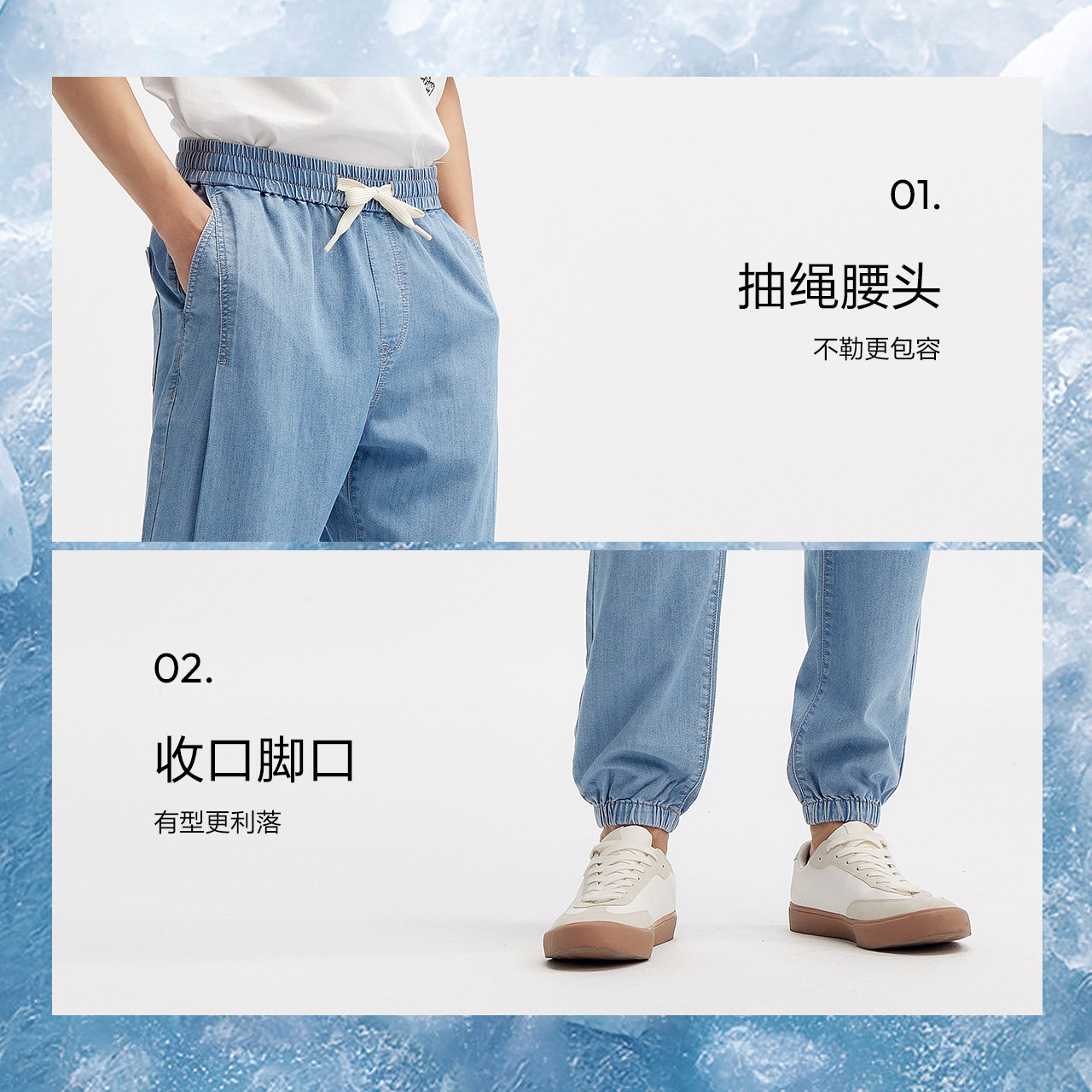 森马牛仔裤男2025夏季新款凉感松紧腰裤子男士宽松冰丝薄款束脚裤