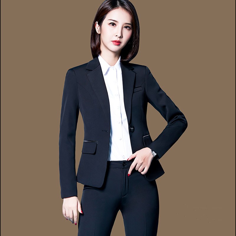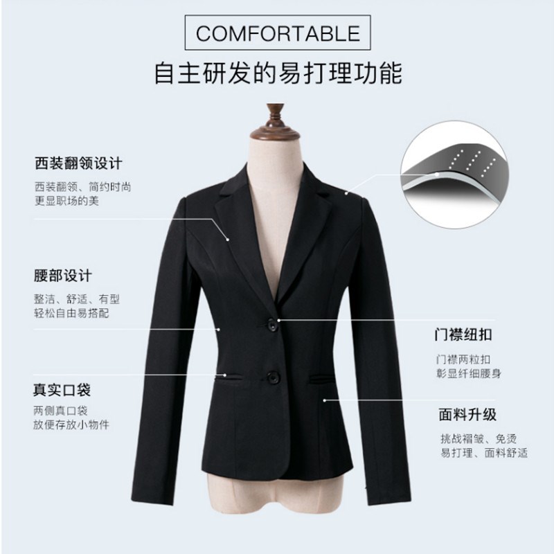 西服套装女春秋新款免烫气质黑色面试修身大码外套职业正装工作服