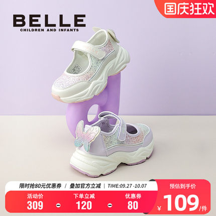 百丽童鞋舒透透气运动鞋春季女童防滑软底休闲鞋洋气小蝴蝶宝宝鞋