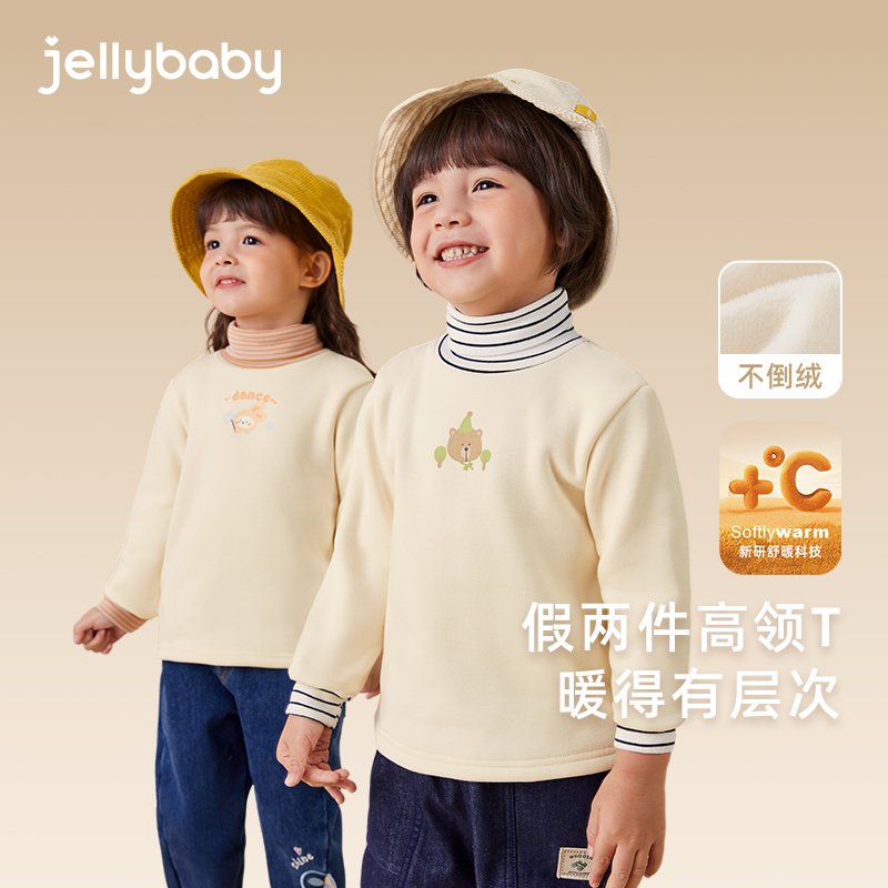 [远红外]女童加绒T恤儿童秋冬男童半高领保暖打底衫5宝宝冬装上衣