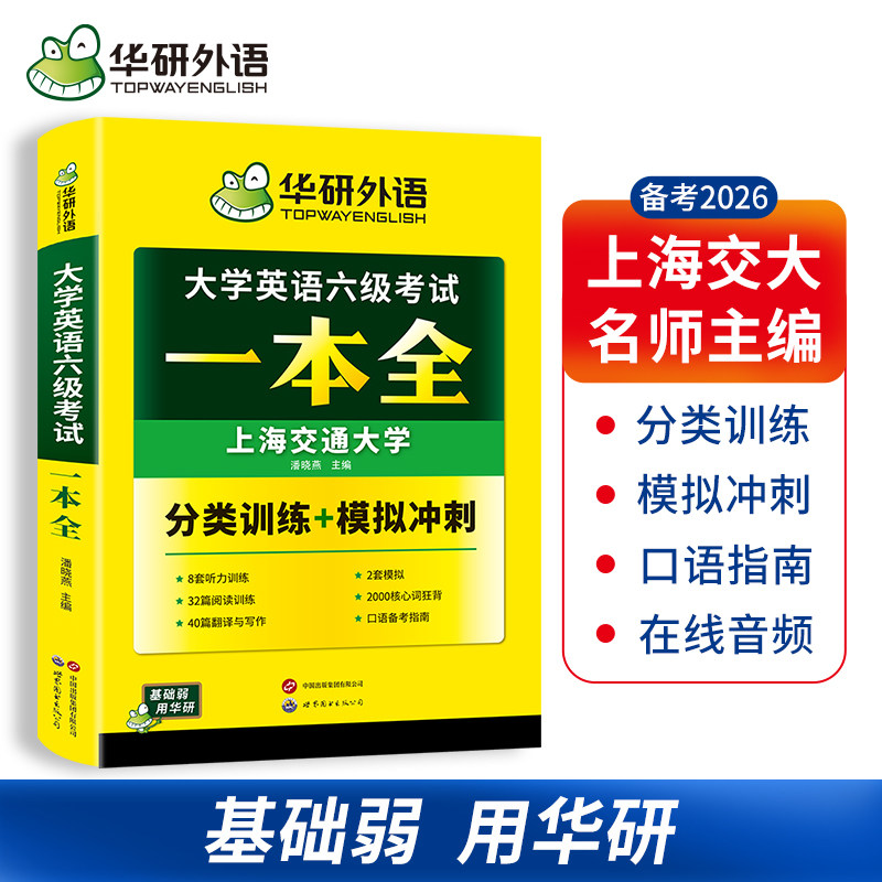 华研外语 备考2026年6月大学英语6级考试一本全听力新题型改革版英语四六级阅读理解翻译写作文模拟试卷高频词汇卡片cet46四六级