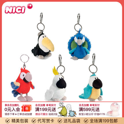 德国NICI钥匙扣公仔挂件鹦鹉钥匙扣小鸟吊饰包包背包装饰毛绒玩具