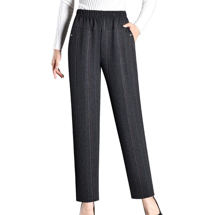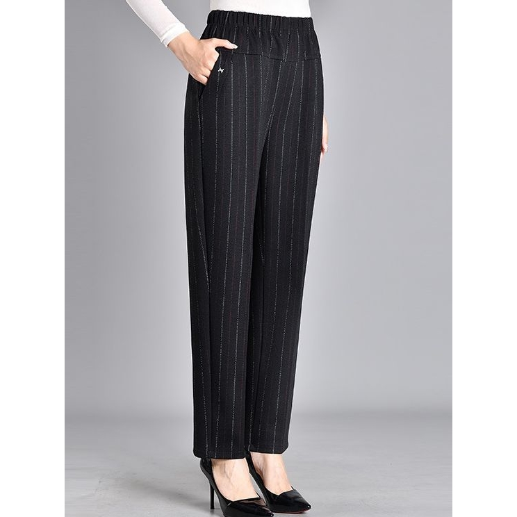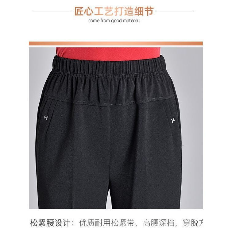 中老年人女松紧高腰裤子妈妈春秋休闲长裤秋冬宽松奶奶黑色直筒裤