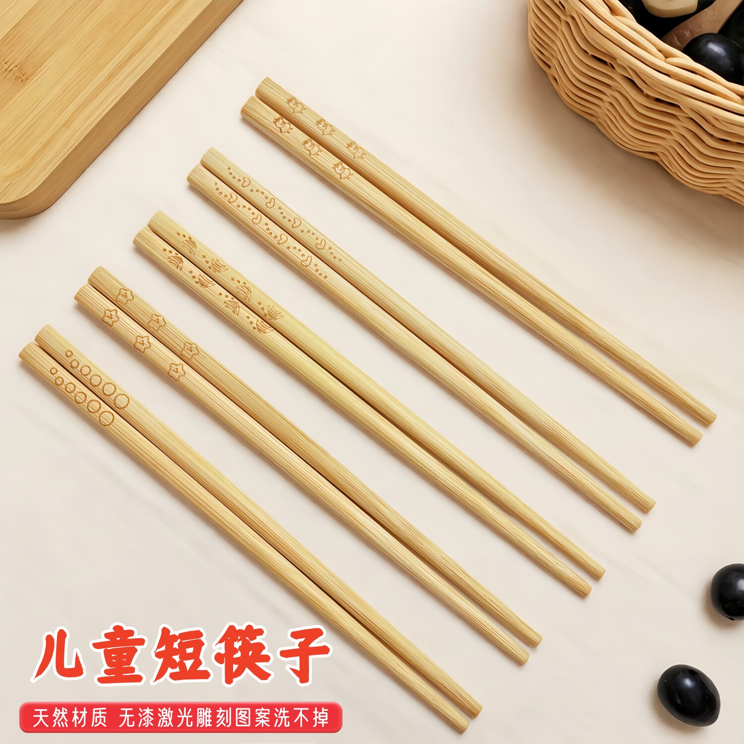 儿童筷子卡通家用小孩短款宝宝学习筷竹木筷幼儿园专用练习筷刻字