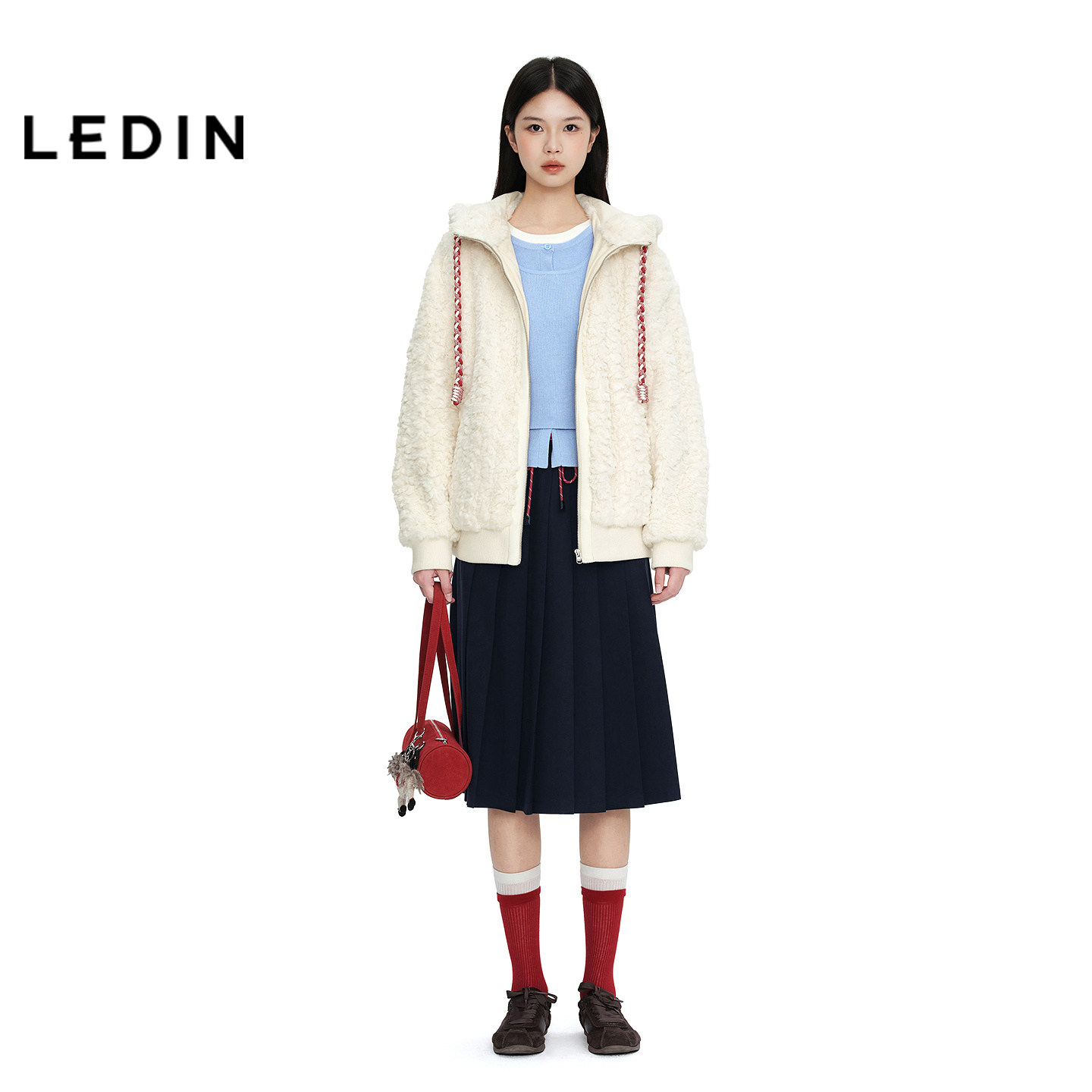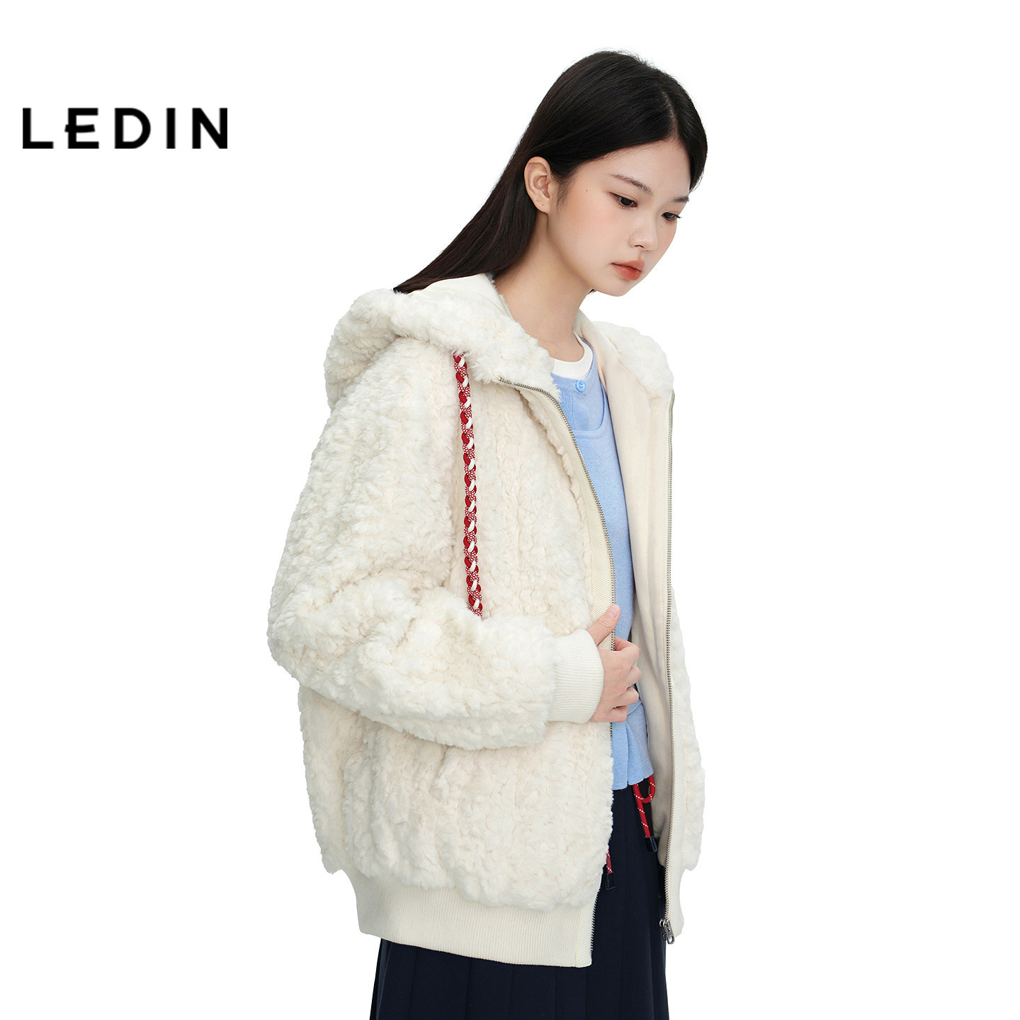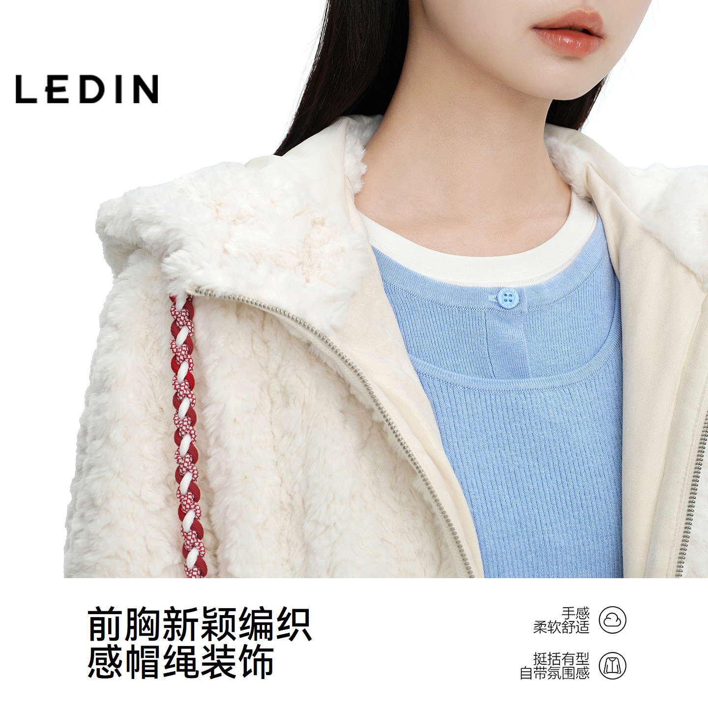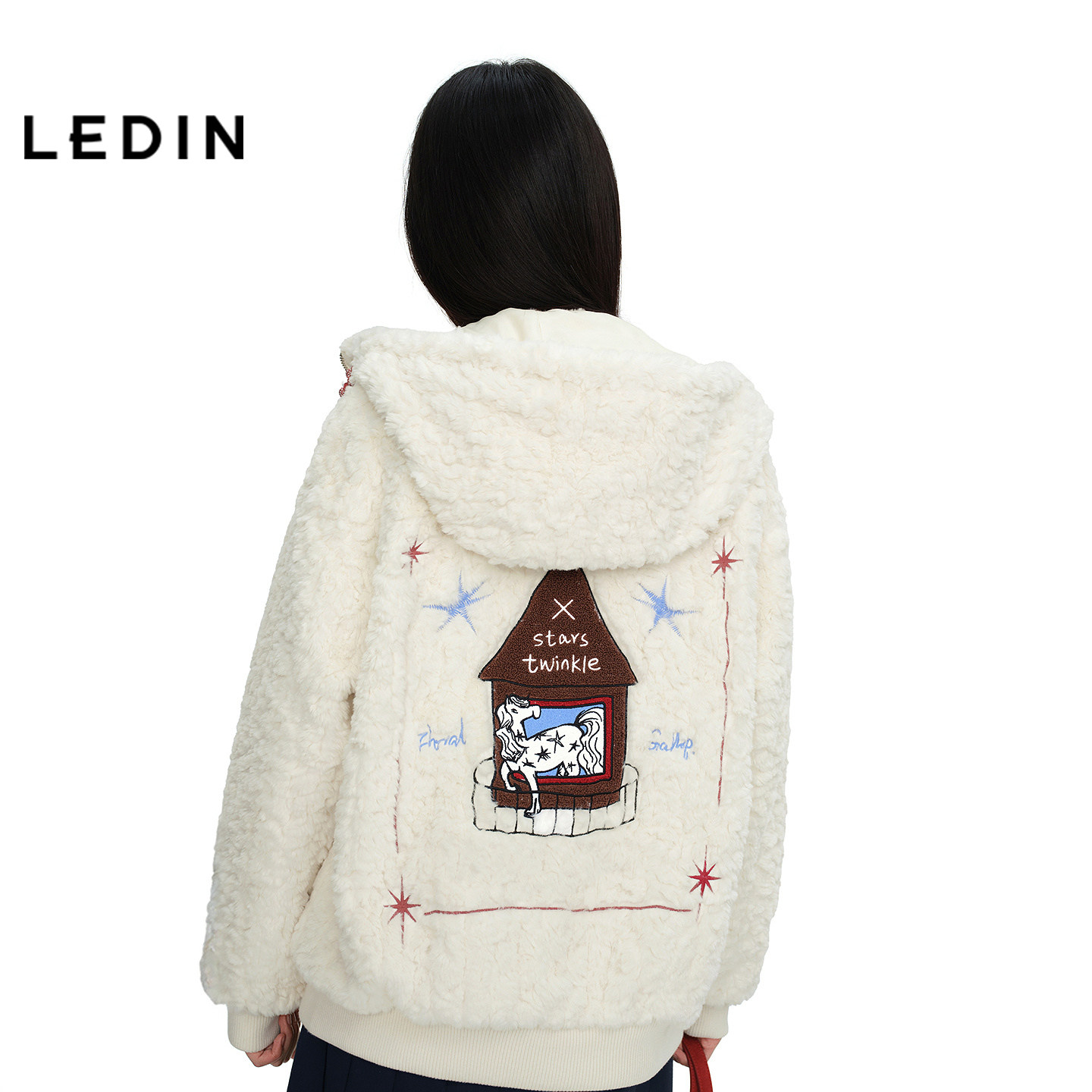 【商场同款】乐町连帽撞色抽绳外套新款绣花马拉链上衣C2AEG1223