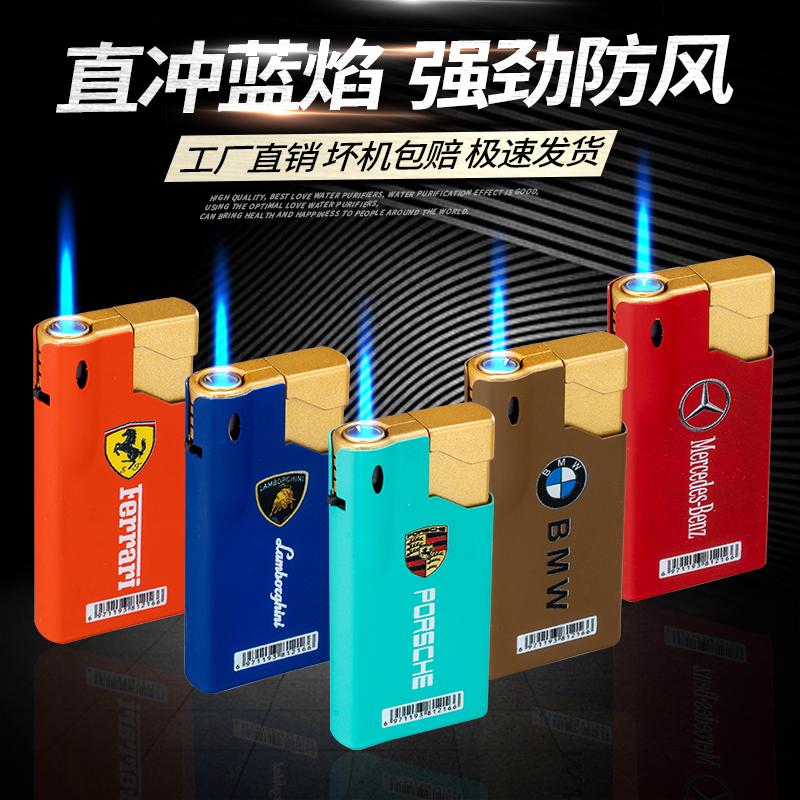 新款正品金属防风打火机彩印蓝焰直冲个性充气送男女朋友礼物广告