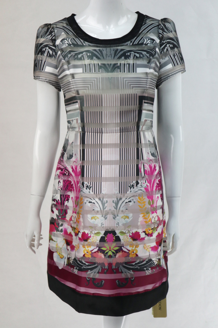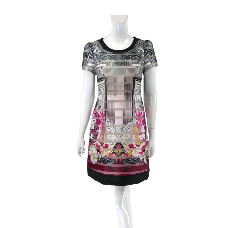 蕾DOW 正品 针梭拼甜美欧根纱提花印花拼色女夏连衣裙 L5SA14160