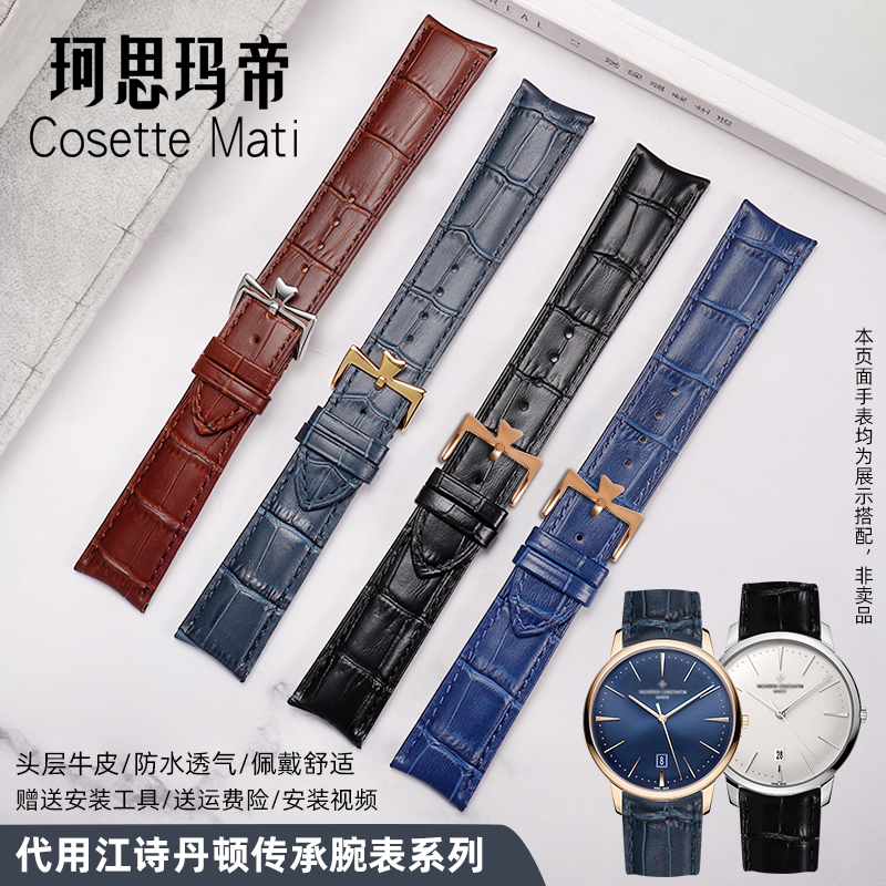适用于江诗丹顿表带传承85180弧口马耳他系列鳄鱼纹真皮手表带男
