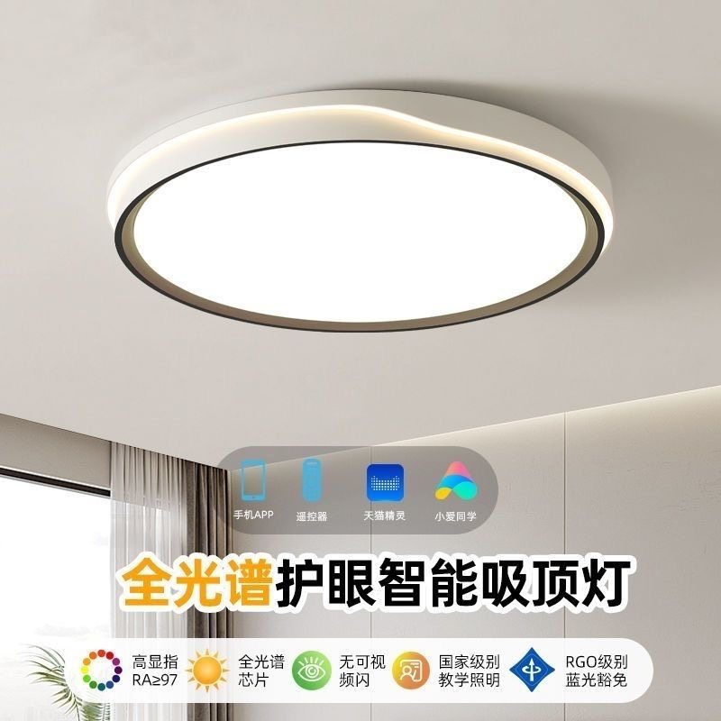 圆形主卧室灯主灯简约现代奶油风中山现代简约灯长方形客厅吸顶灯