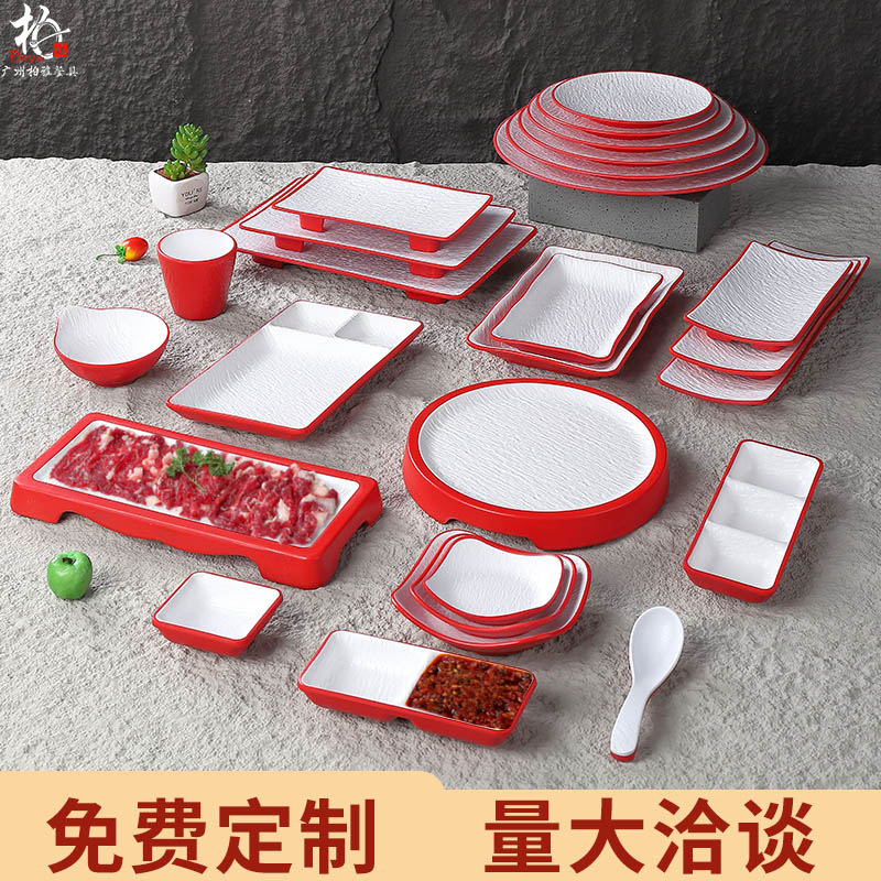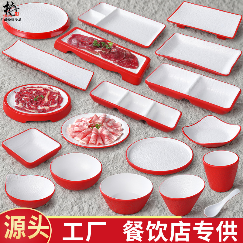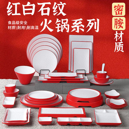 密胺石纹北欧火锅店餐具凉菜盘子商用塑料烤肉配菜盘套装创意碗筷