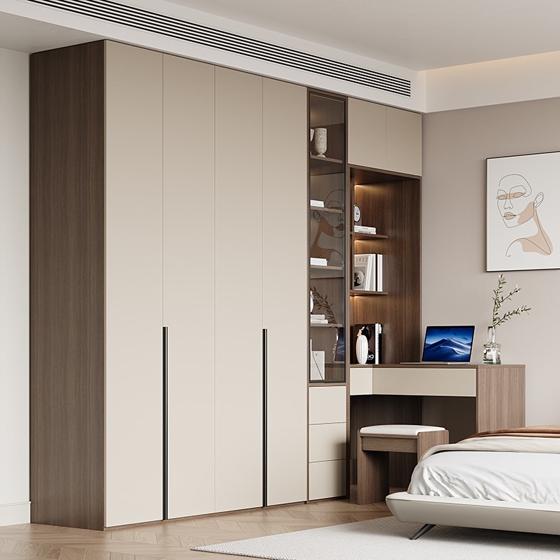 实木衣柜家用卧室新款梳妆台一体六门到顶大M衣橱转角书桌组合柜