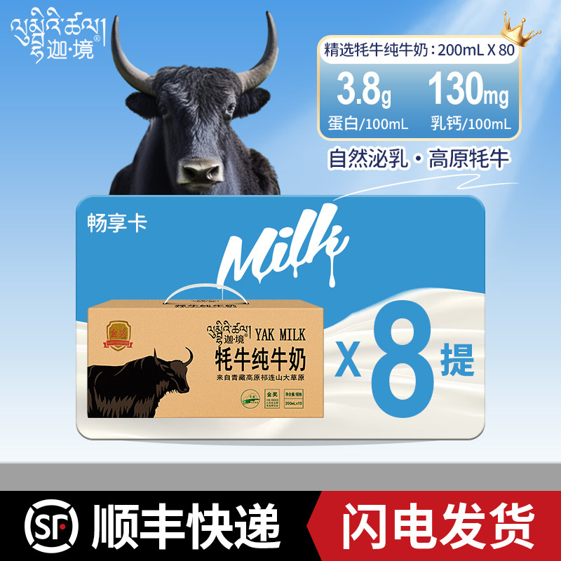 迦境牦牛纯牛奶整箱青藏成人早餐耗奶200ml*10盒*8提节日送礼