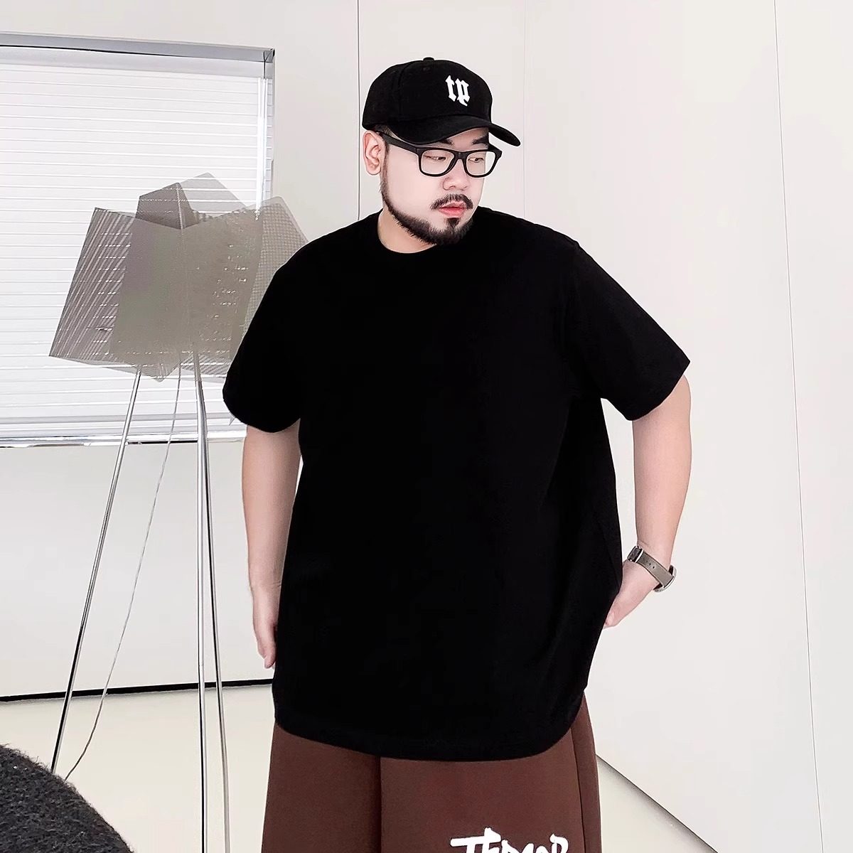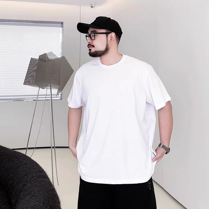 纯棉白色t恤短袖男潮流夏季胖子宽松大码简约百搭半截袖体恤上衣