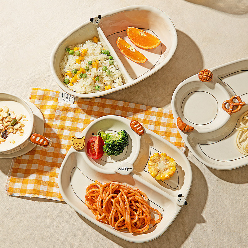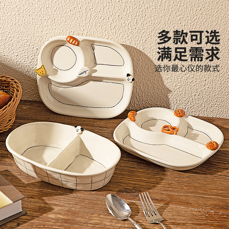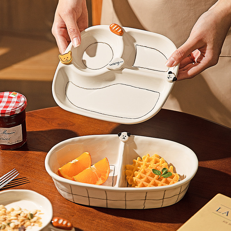 摩登主妇釉下彩盘子一人食分格早餐盘餐具家用碗具酸奶碗生日礼物