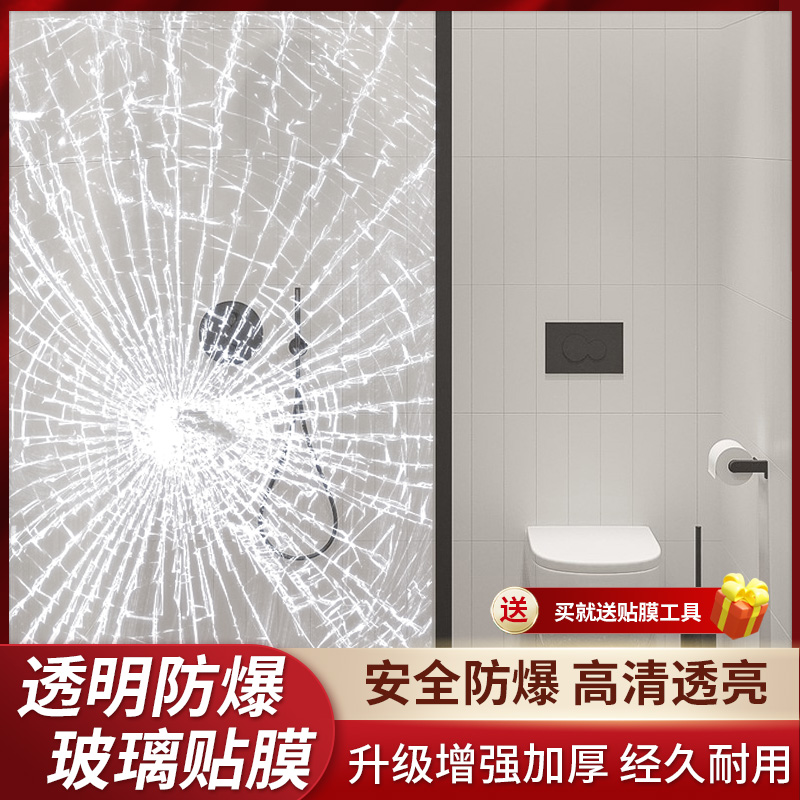 玻璃防爆膜淋浴房卫生间浴室窗户门防碎家用透明贴膜钢化玻璃贴纸