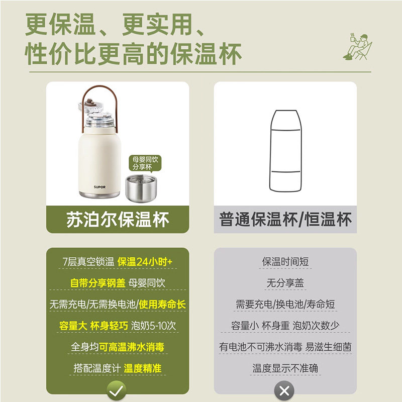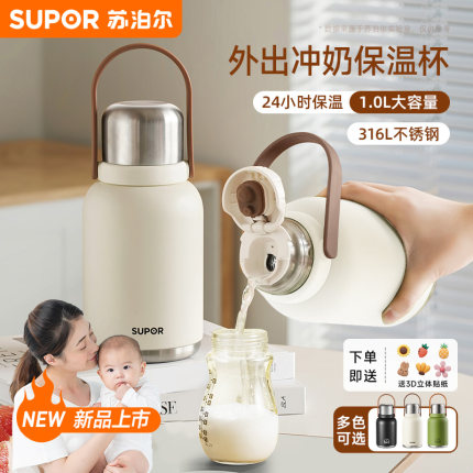 苏泊尔保温杯316L不锈钢婴幼儿冲奶粉外出宝宝便携户外泡奶壶冬季