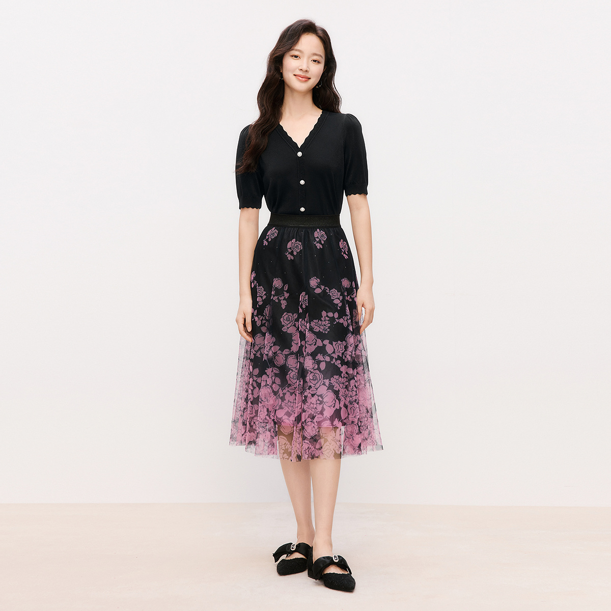 【花事漫旅】珂莱蒂尔春季浪漫玫瑰薄纱半身裙子女半裙