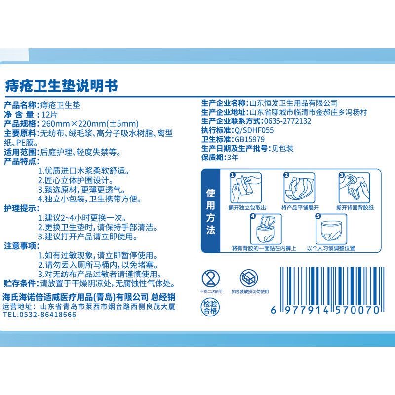 海氏海诺痔疮护垫护理垫成人大尾翼护理巾术后卫生垫吸水防漏贴