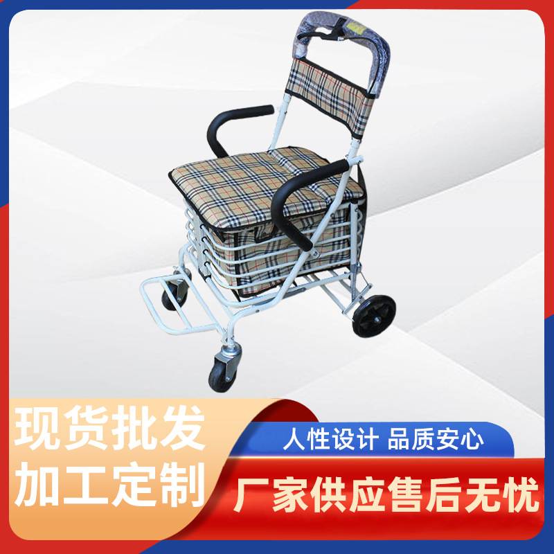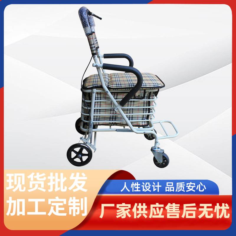 老人购物手推车买菜小拉车助行器折叠便携车可推可坐带脚踏