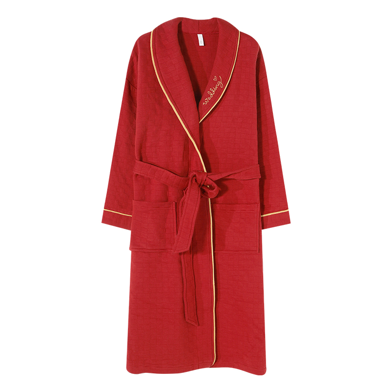 芬腾可安情侣睡袍女秋冬纯棉夹层长袖薄夹棉浴袍男加厚空气棉睡衣