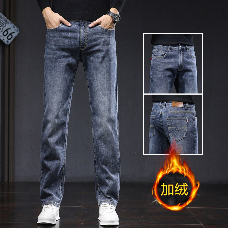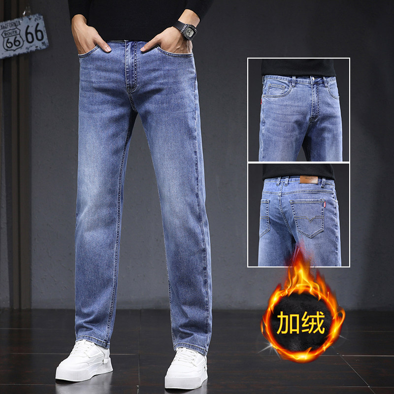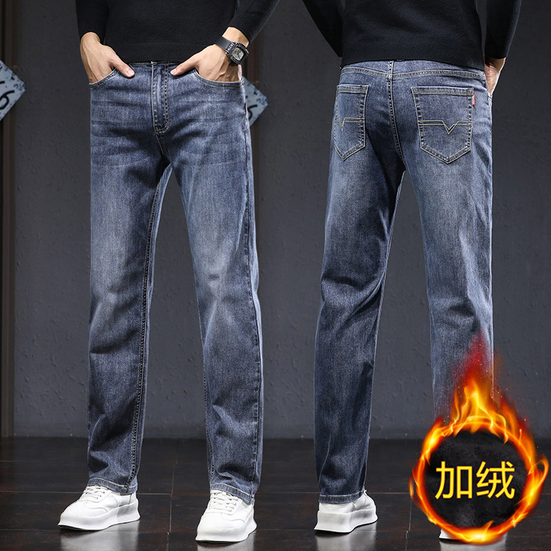 KP真维斯加绒直筒牛仔裤男士秋冬潮牌时尚商务显瘦百搭休闲长裤子