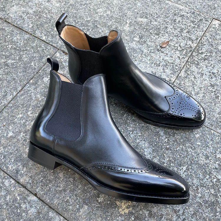 欧美真皮男鞋切尔西靴正装皮鞋英伦布洛克款式高帮雕花男靴秋冬季