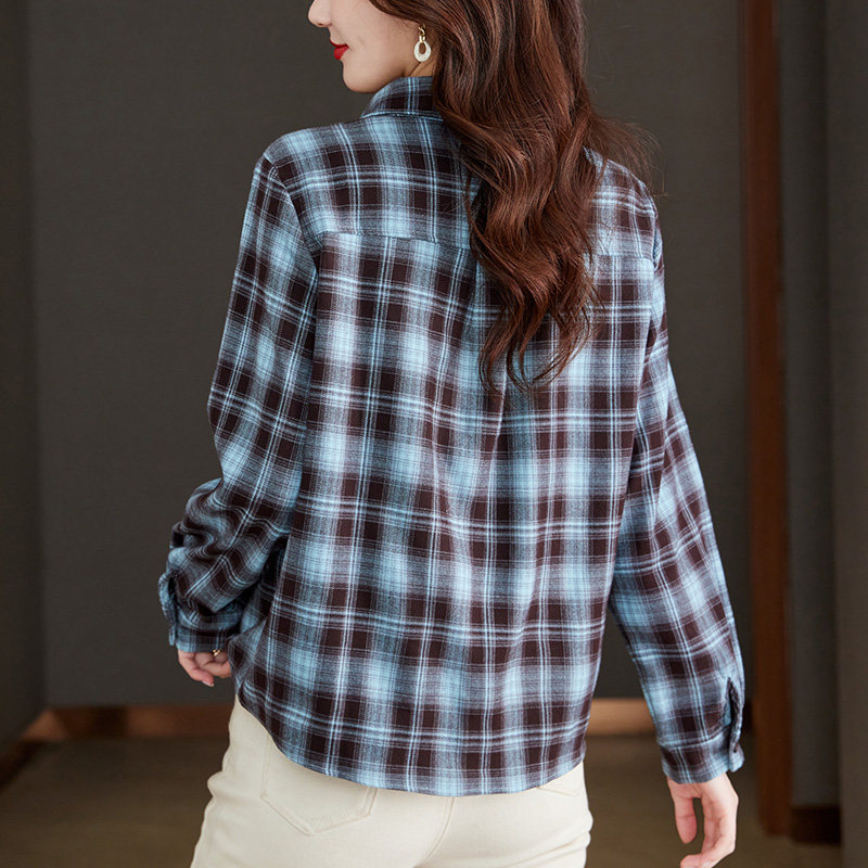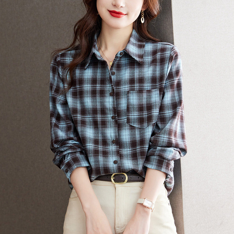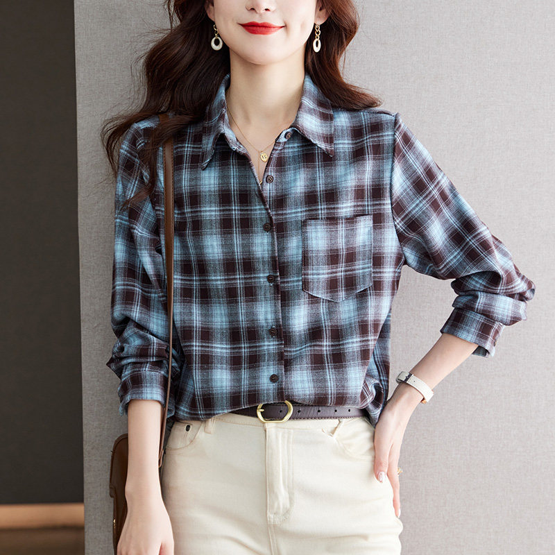 初影格子衬衫女长袖磨毛加厚上衣港风文艺复古TR衬衣