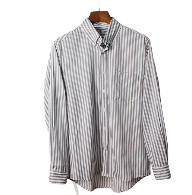 条纹雅痞风!日单复古水洗旧视感男女情侣款微弹长袖衬衣衬衫上衣