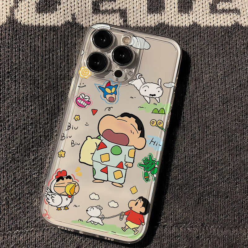 睡衣遛狗小新适用苹果16promax手机壳15卡通vivox100红米note13防摔小米14一加华为pura70荣耀200软壳OPPO女